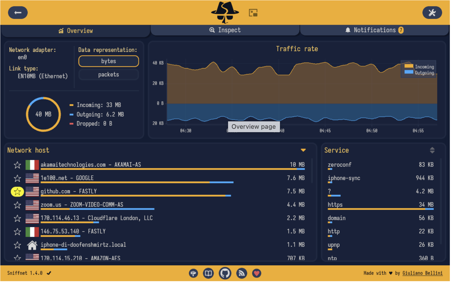 一款可以跨平台使用的、可以便捷监控网络流量的应用程序。