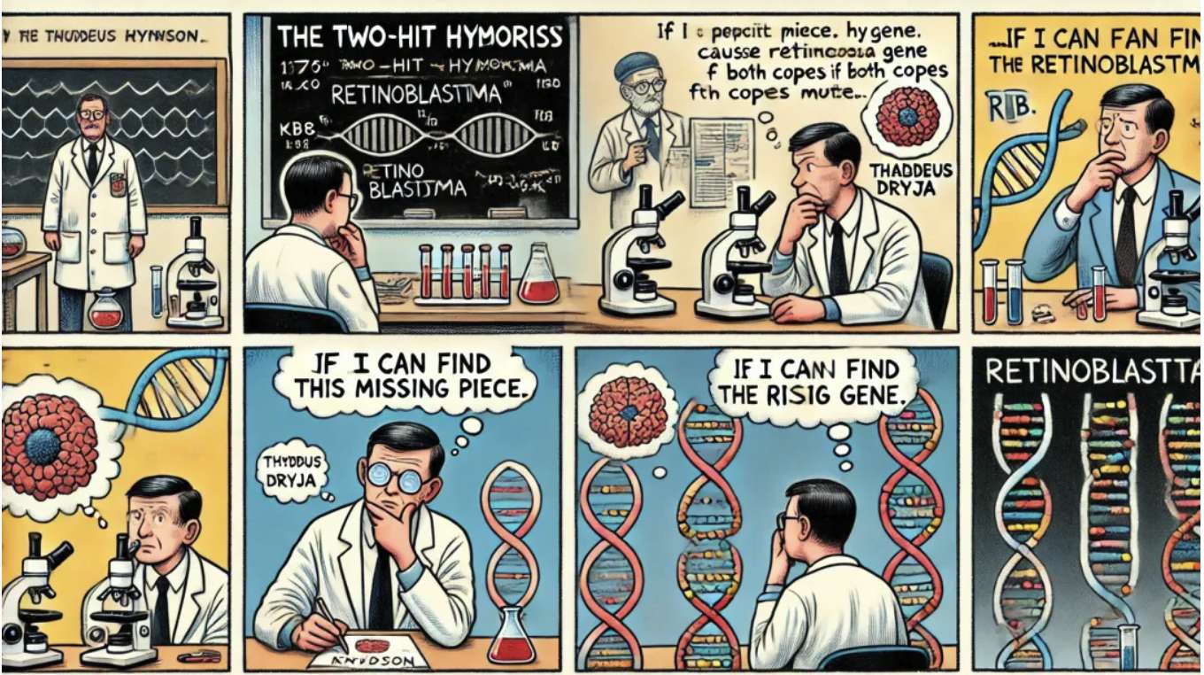 20世纪70年代,克努森提出“二次突变假说”解释视网膜母细胞瘤的成因。80年代中期,麻省眼耳医院的萨德·德里亚医生通过建立肿瘤样本库并利用DNA探针技术,在肿瘤细胞中定位到第13号染色体上的关键缺失片段。随后,他与怀特黑德研究所的史蒂夫·弗兰德合作,于1986年在《自然》杂志上正式确认了该基因——即视网膜母细胞瘤易感基因(Rb)。这一发现不仅揭示了该儿童眼癌的遗传机制,更首次鉴定出一个具有广泛意义的抑癌基因,其功能失活被证明与多种成人癌症(如肺癌、乳腺癌)的发生密切相关,为理解细胞周期失控和肿瘤发生奠定了基石。