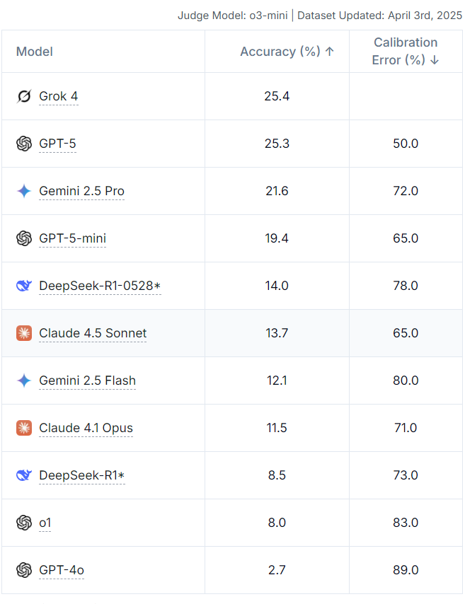 Humanity’s Last Exam 由全球 50 国、500 余家机构的近千名专家联合打造,汇集 2500 道横跨百门学科的高阶难题,对主流大语言模型进行闭卷测试,为评估通用智能进展提供全新硬核基准。