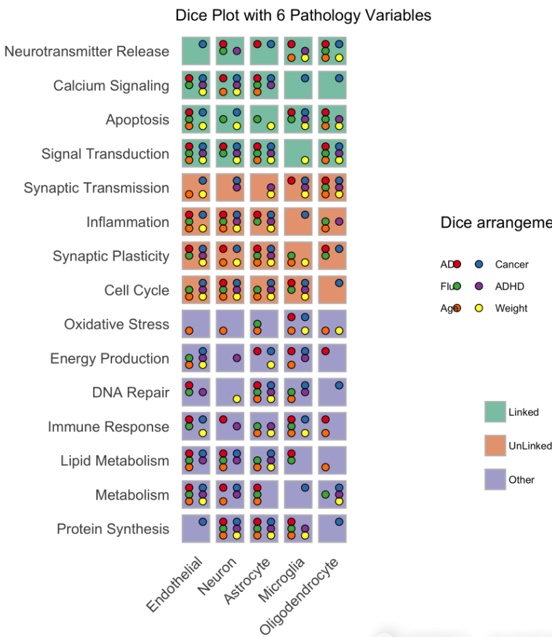 diceplot包允许为包含两个以上分类变量和额外连续变量的数据集创建可视化图表(骰子图)。该工具对于探索复杂的分类数据及其与连续变量之间的关系特别有用。