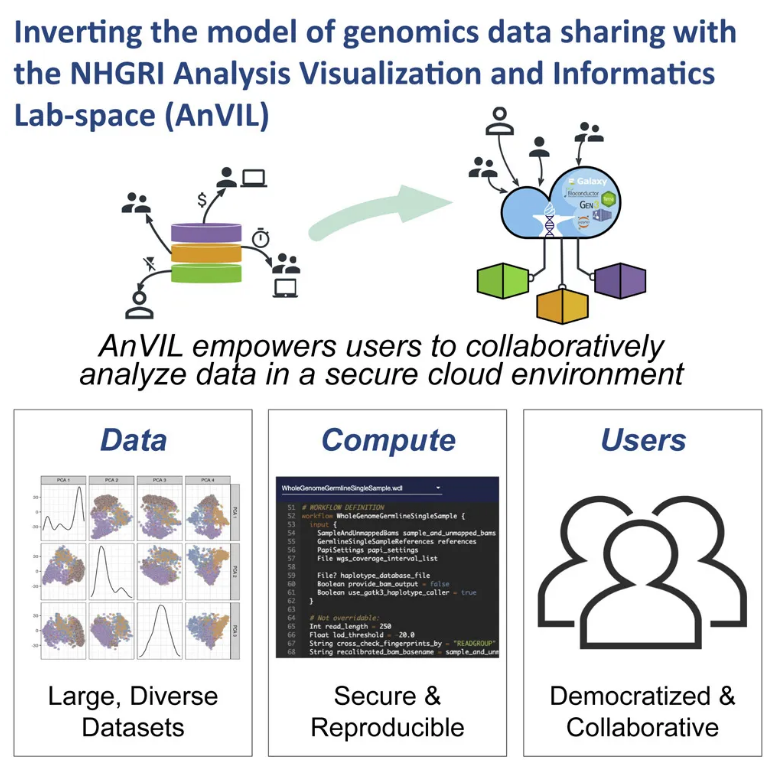 AnVIL是NHGRI打造的联合云平台,通过 Terra、Galaxy 等组件把 PB 级基因组数据、分析工具与弹性算力集中在同一安全空间,让研究者无需搬运数据即可在线协作完成人口规模分析,从而颠覆传统共享模式,加速科学发现。