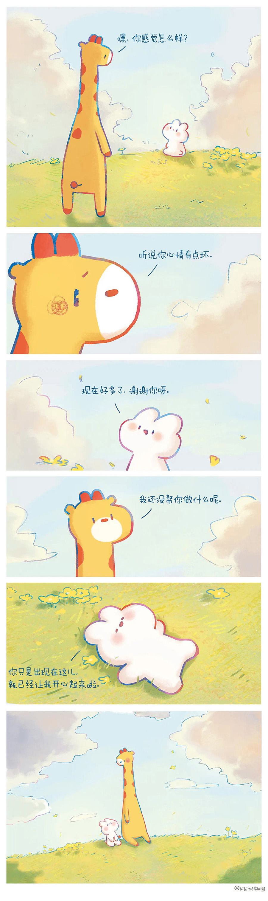 又一本 bibi 园长的书,在 2024 年 7 月出版,相比其它书,这本有一个更清晰的主题,它精选了之前 bibi 园长画的小漫画里面卜卜兔和小鹿两个角色的故事,并将这些内容重组成了新的故事线,从两个角色相遇认识,到相互陪伴,到互相成为对方“最特别的那个人”的全过程。