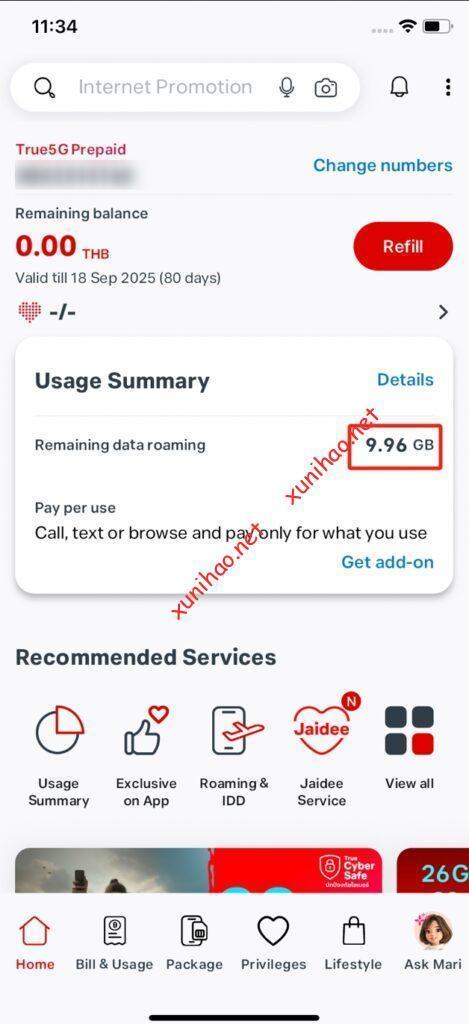TrueMove H 提供多种电信服务,包括2G、3G、4G 和5G 移动通信服务,以及宽带互联网和数字电视等。推出的泰国TrueMove H 电话卡激活可以通过拨打*900# 完成,流量包可以在My True 应用程序中购买。