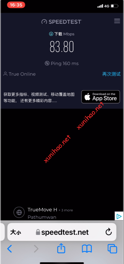 测试TrueMove H流量卡的网络速度,网速4G里面算很快的