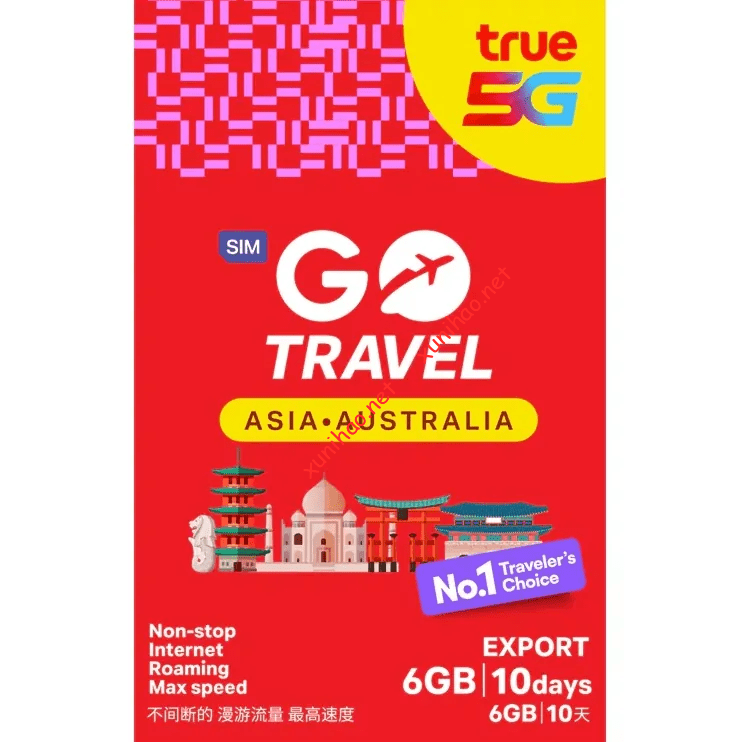 目前,TrueMove H 推出了一款TRAVEL系列亚洲&澳洲10天6GB卡高速流量卡,与现在需要实名的AIS SIM2fly流量卡8天6gb套餐差不多。