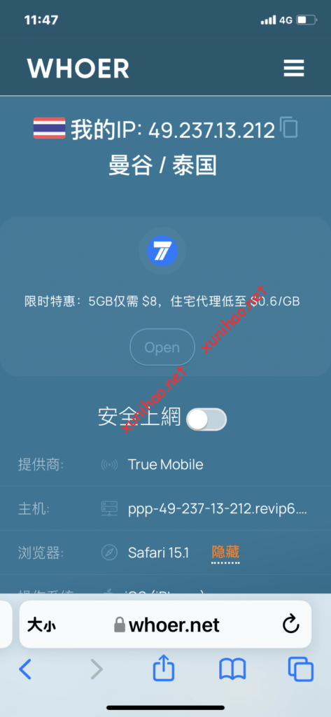 通过查询IP显示泰国原生IP,这点与AIS SIM2FLY一样