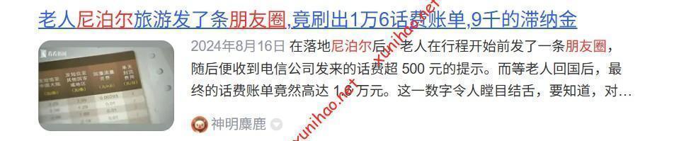 现在这个泰国TRAVEL的漫游目的地还包含尼泊尔,这让虚拟号想到了去年的一条热搜新闻,一个老人去了尼泊尔旅游发了条朋友圈,结果1万6的话费账单,9千的滞纳金。