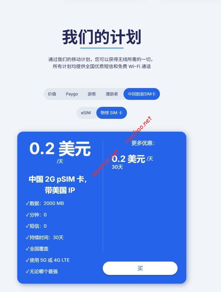 总结:有实体卡和ESIM.但是实体卡寄送容易丢,香港发出来。ESIM当时实测特定手机才能下载,客服回复很慢。但是有透明的用量查询,自己支付月租使用VISA等付款方式挺方便。相对于上述白卡,对个人用户比较友好。官网系统开发比较完善,有自己的技术团队也是行内人做出来的美国T-MOBILE MVNO运营商。