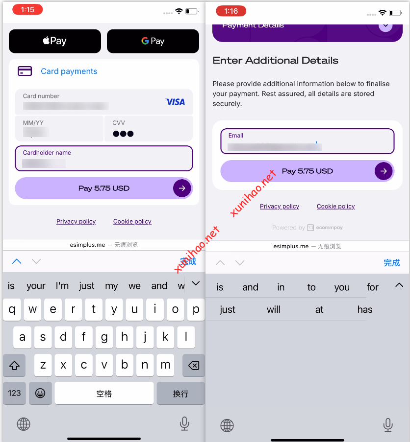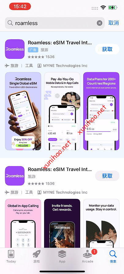 虚拟号写本次文章时,使用了APPLE 16港版ESIM手机,也使用了XESIM芯片和ESTK芯片都下载成功了这个ROAMLESS的流量包