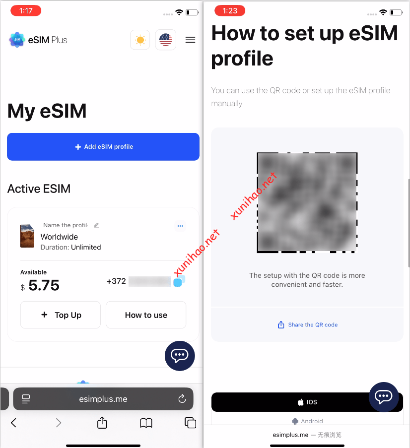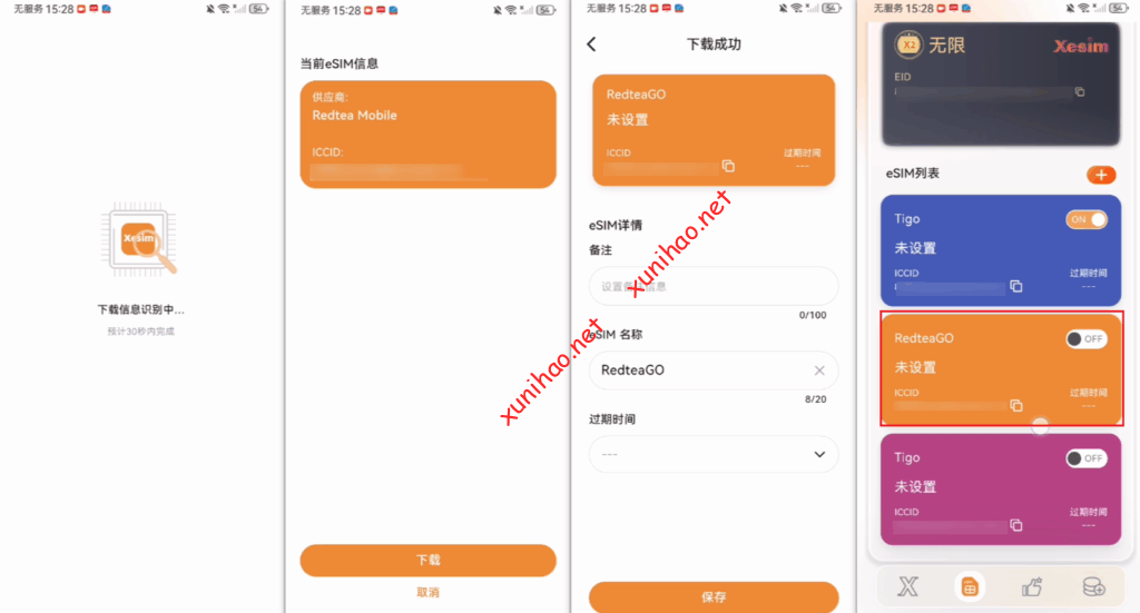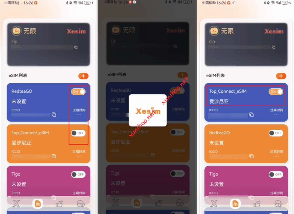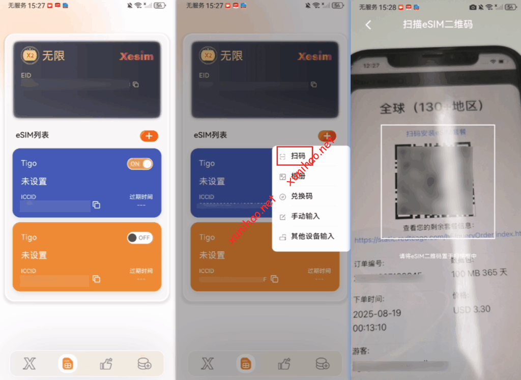 本次测试购买的3个esim号码套餐都是使用Xesim芯片完成的,Xesim App 无须注册,无须登录。