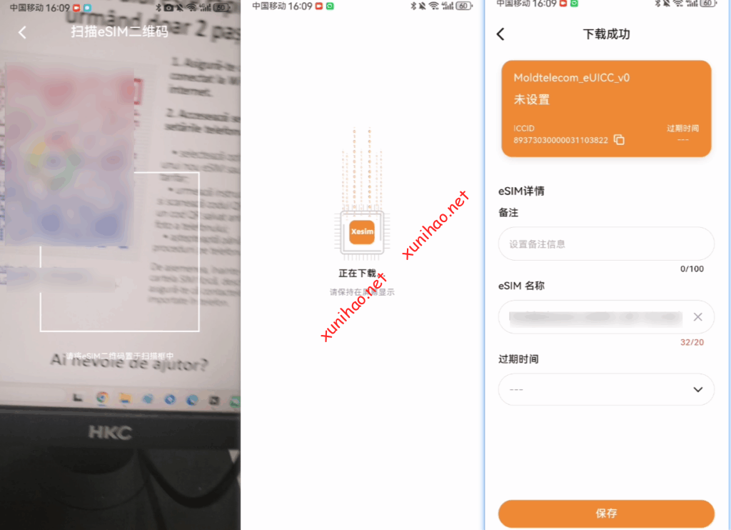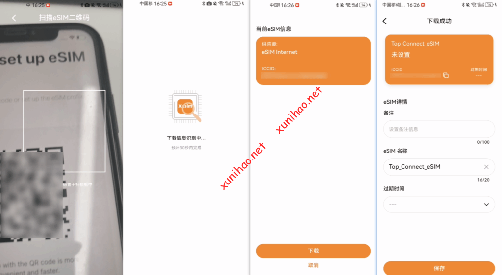 扫码下载邮件中的二维码,设置好esim的备注信息,可以把电话号码一起填上去,好方便查看。