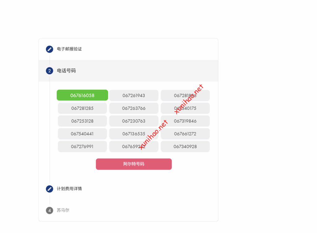 验证好了后,可以挑选一个自己喜欢的电话号码,如果没有自己喜欢的,可以点击下方的other numbers 还可以更换号码