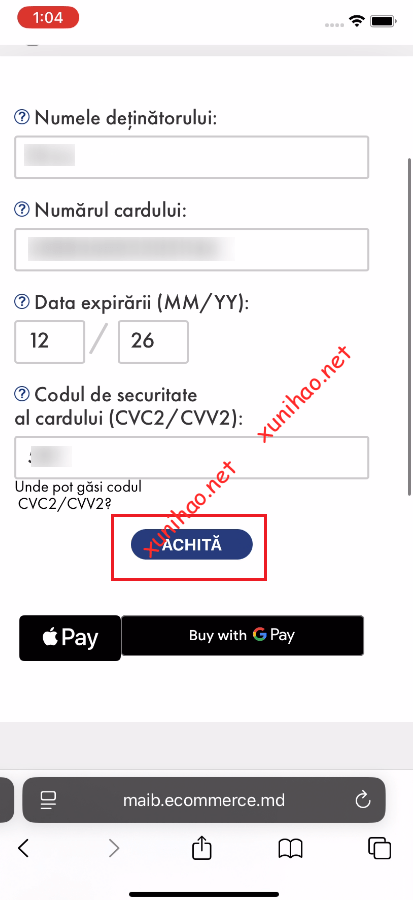 跳转到支付页面,需要填写持卡人的姓名、卡号、日期等,再点击底部支付按钮