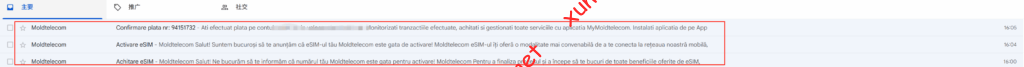 同时,邮箱里面收到了三封邮件,分别是账单邮件、号码信息邮件和激活esim二维码邮件