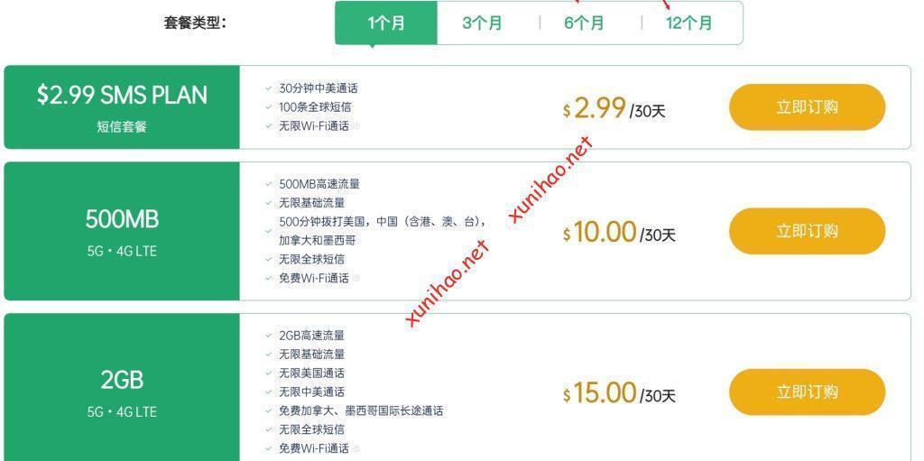10美金月租1GB,无限通话60多个国家地区,一次直接购买12个月才60美金