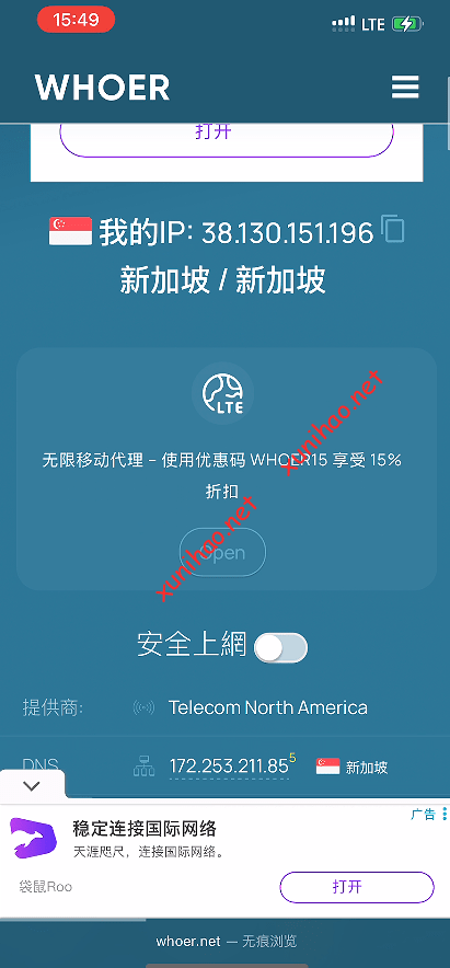 ip是新加坡的ip,用IPDATA.CO查得IP类型是business商业IP,比普通的节点要强一点。最重要是免费的。