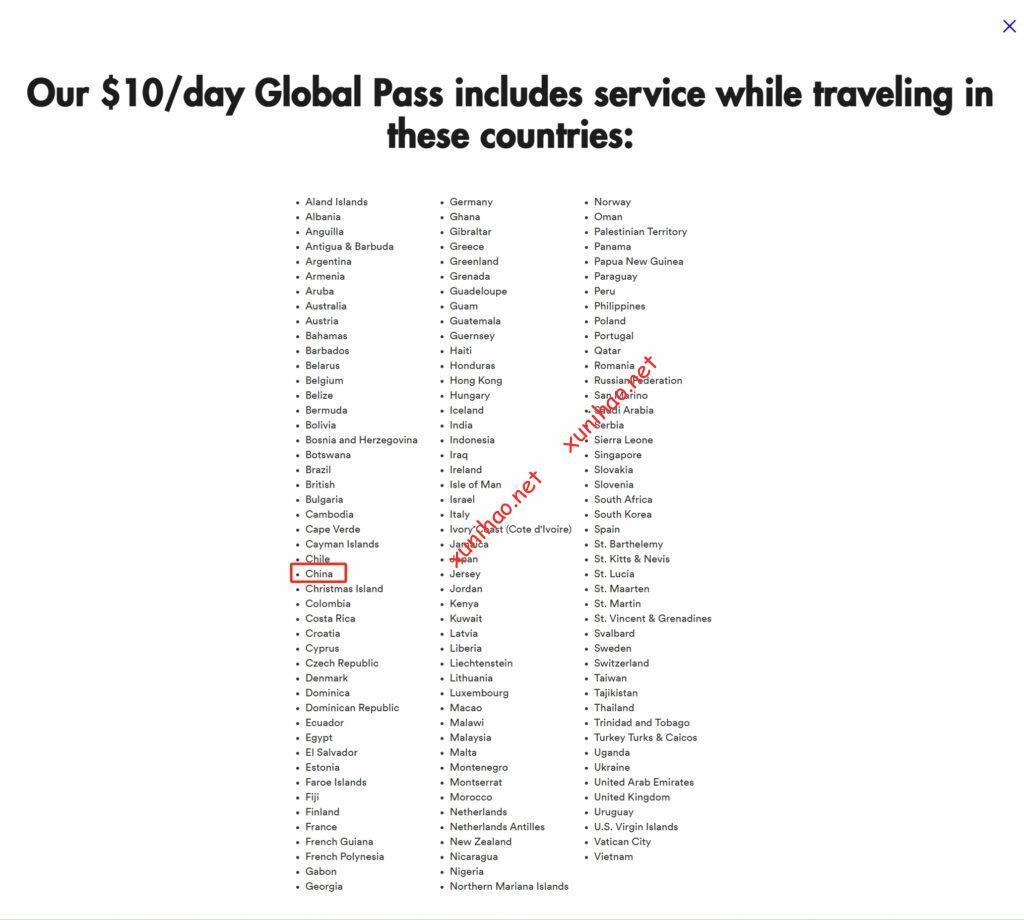 global pass有10美金一天,包含140个国家和地区,里面包含中国。