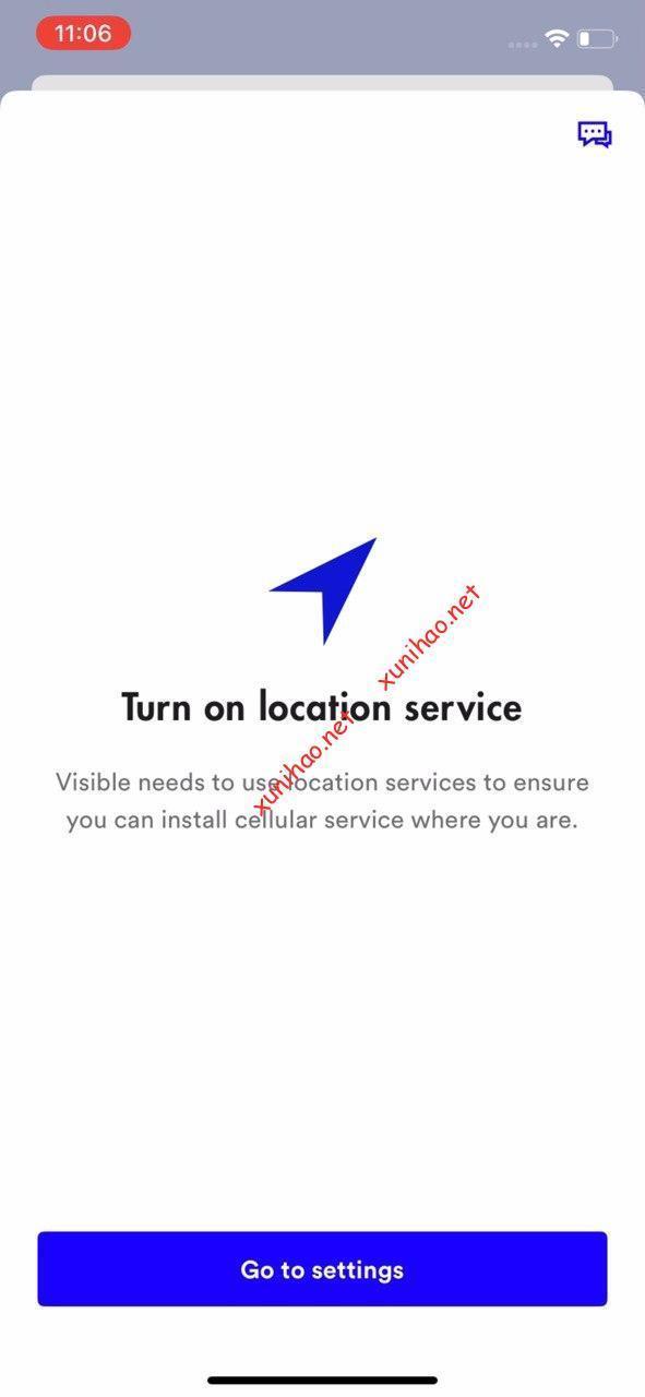 因为手机没有实体visible卡板,所以先是找了一部ESIM苹果手机下载并注册了visible的APP,在购买visible的套餐时,需要打开系统定位功能。然后因为我的定位在中国而不是美国VISIBLE的网络覆盖区域而买不了。