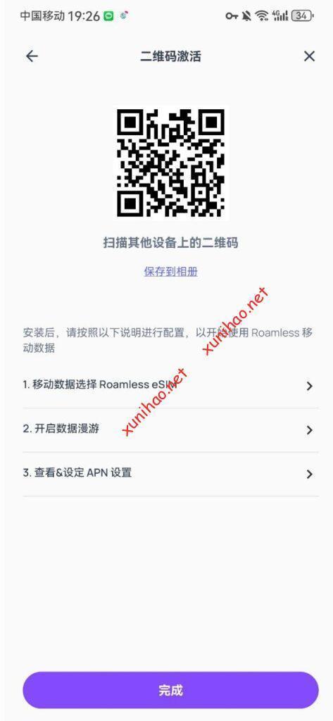 我们仍是在普通手机上装好ROAMLESS APP激活二维码时,点击下方 二维码 来显示ESIM二维码