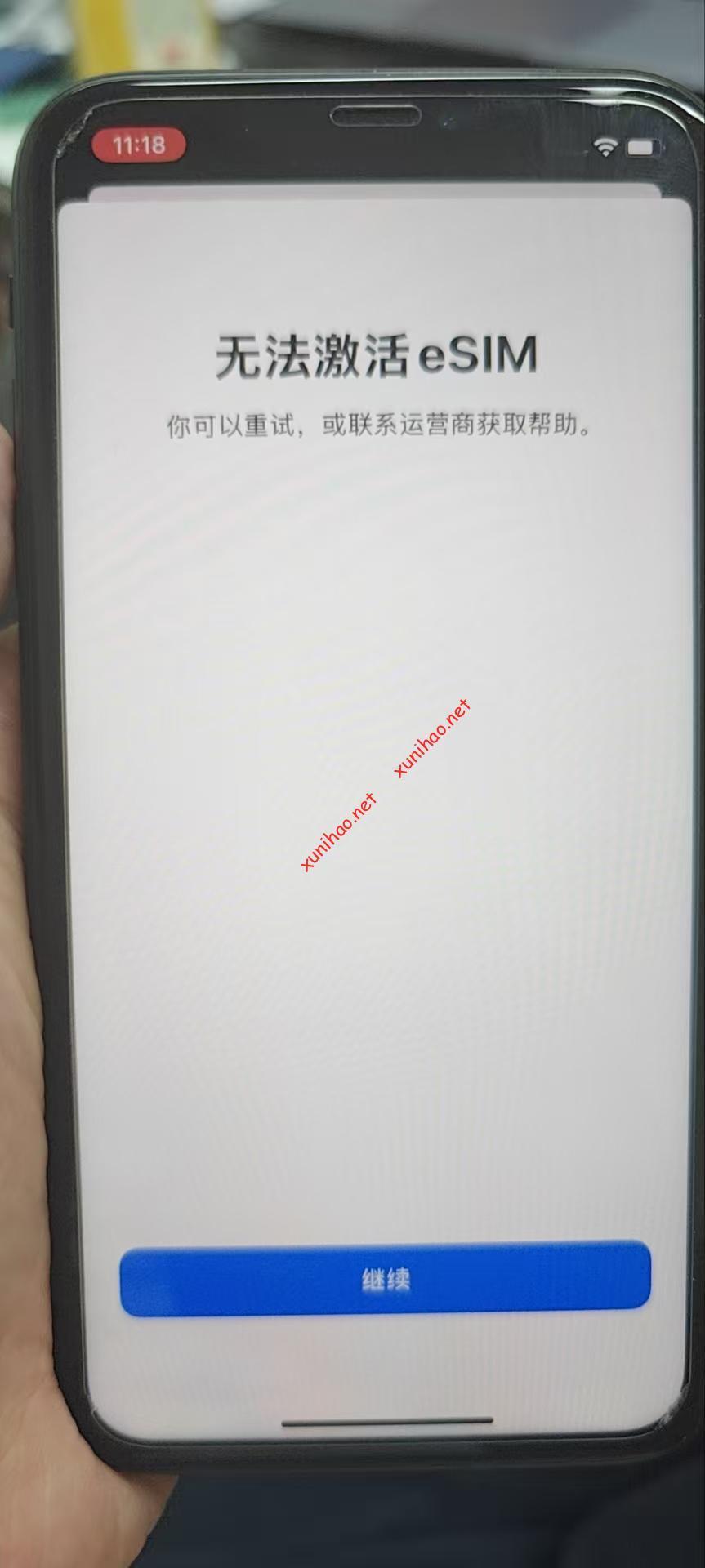 再次提供美版IPHONE Xr无锁带一个ESIM卡槽。可以下发ESIM二维码了。然后连上WIFI扫描加载很久提示“无法激活ESIM”