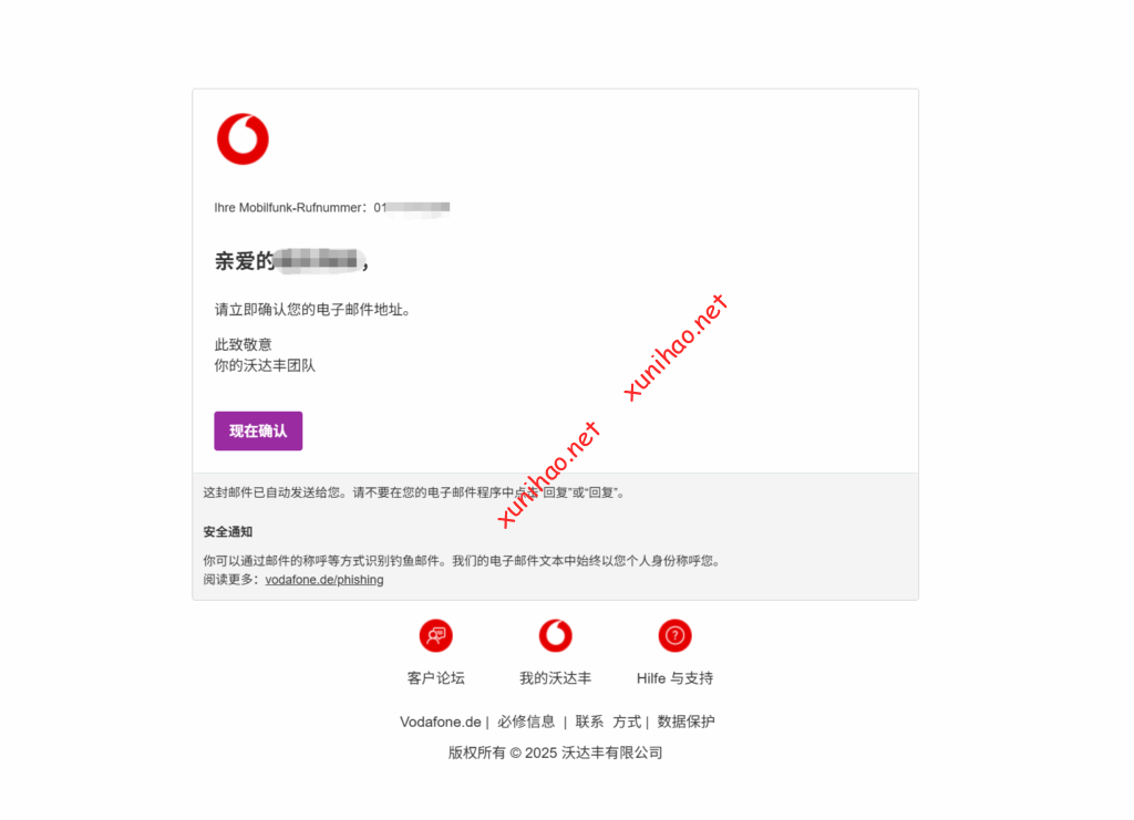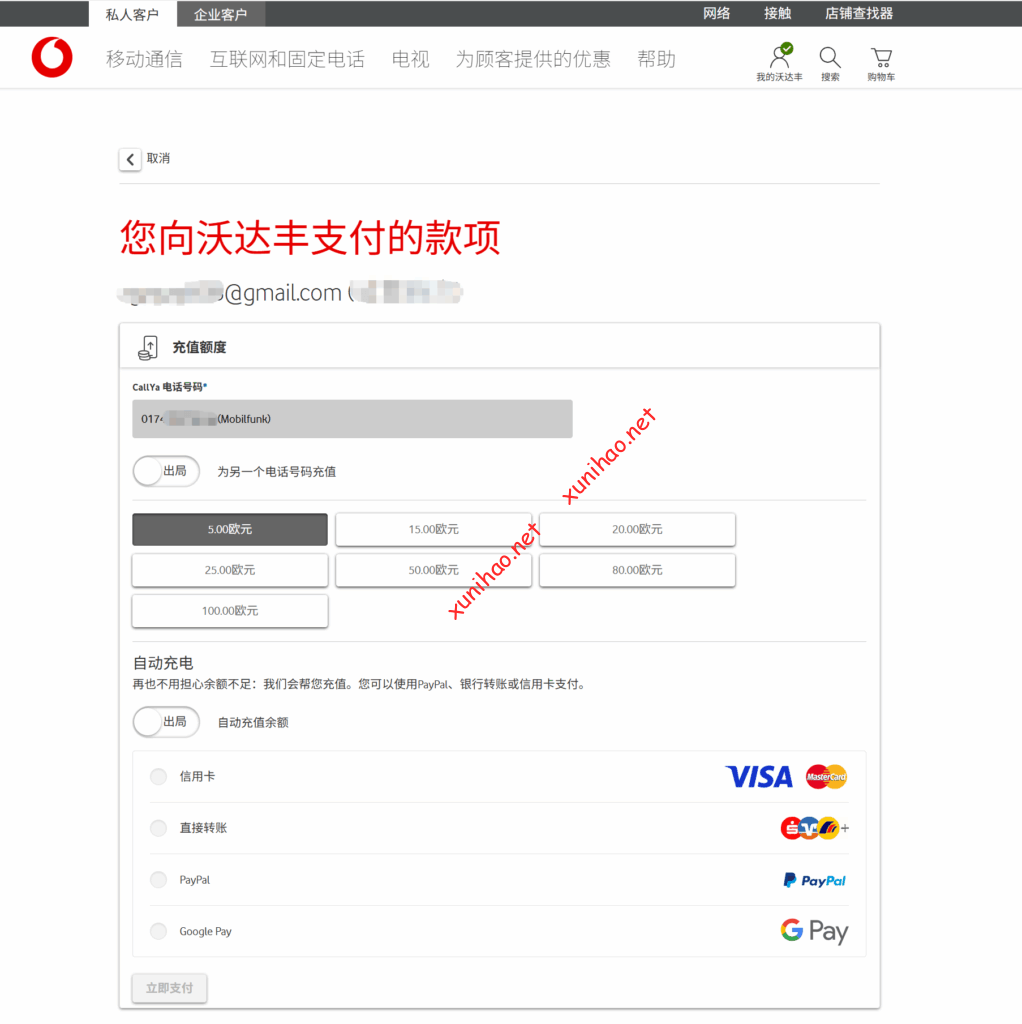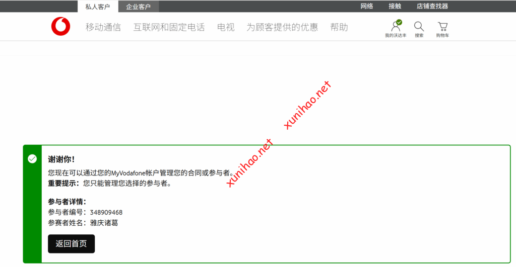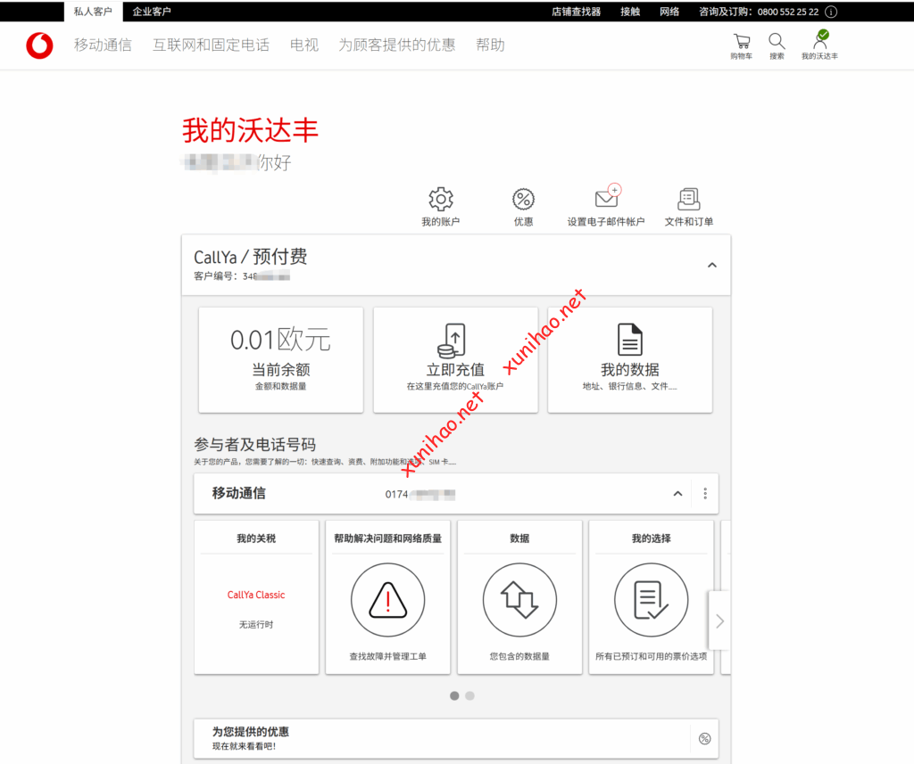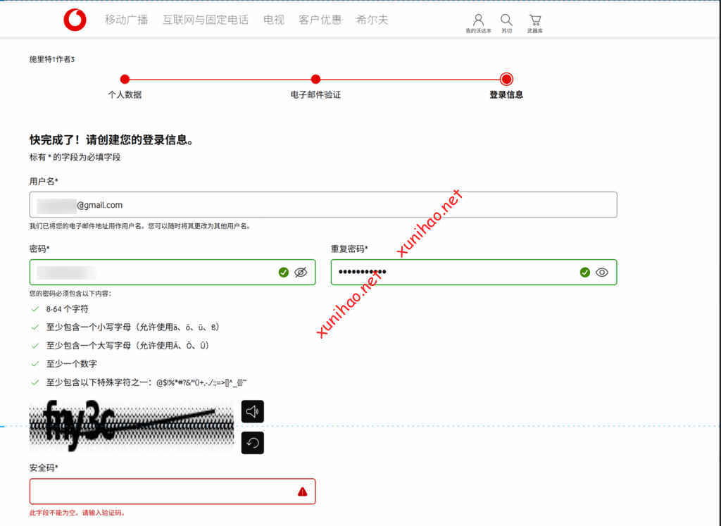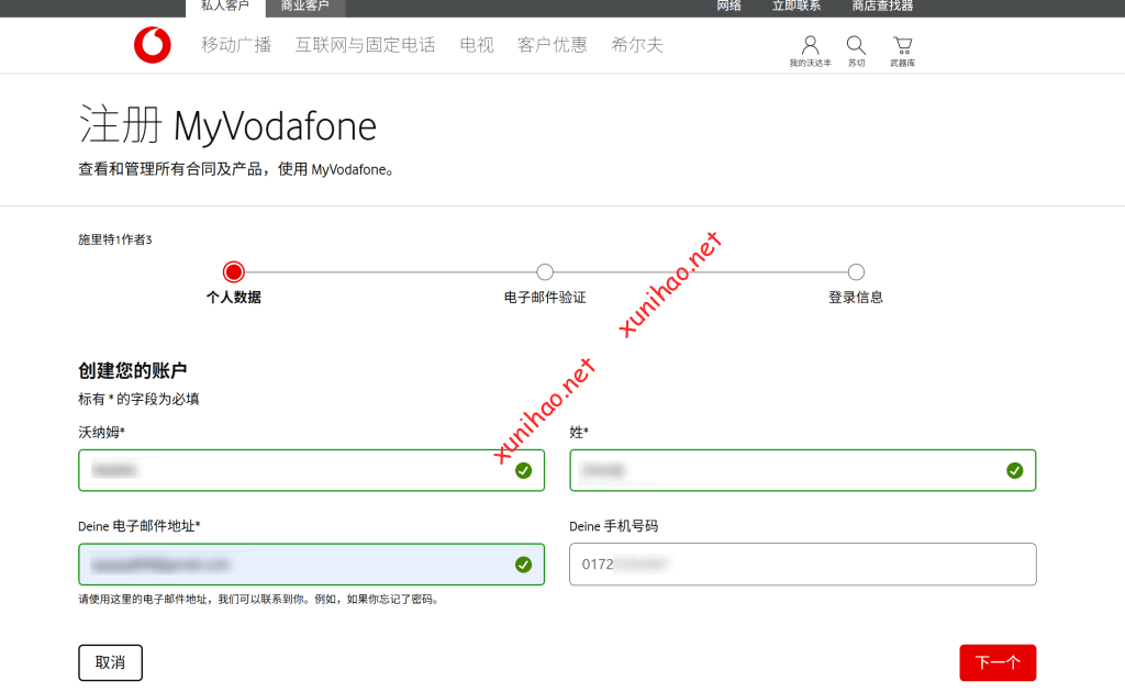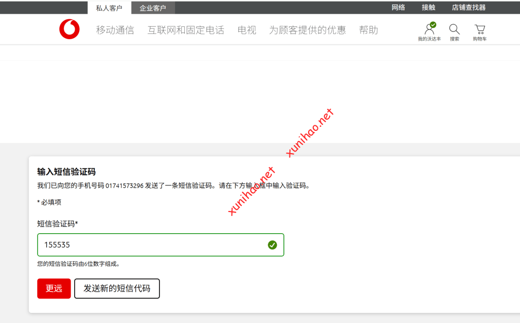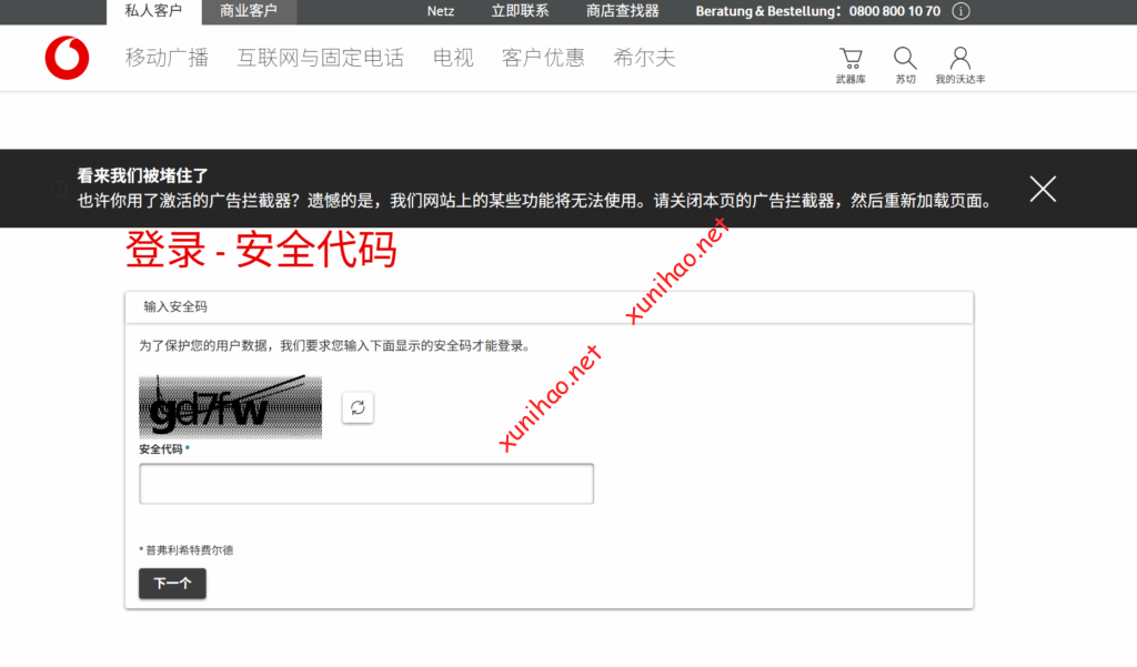 打开vodafone官网(Vodafone.de | Mobilfunk, Handys & Internet-Anbieter),点击我的vodafone,输入验证码