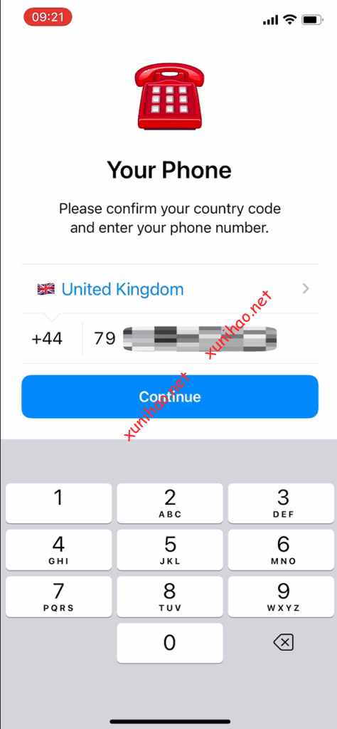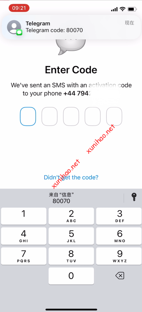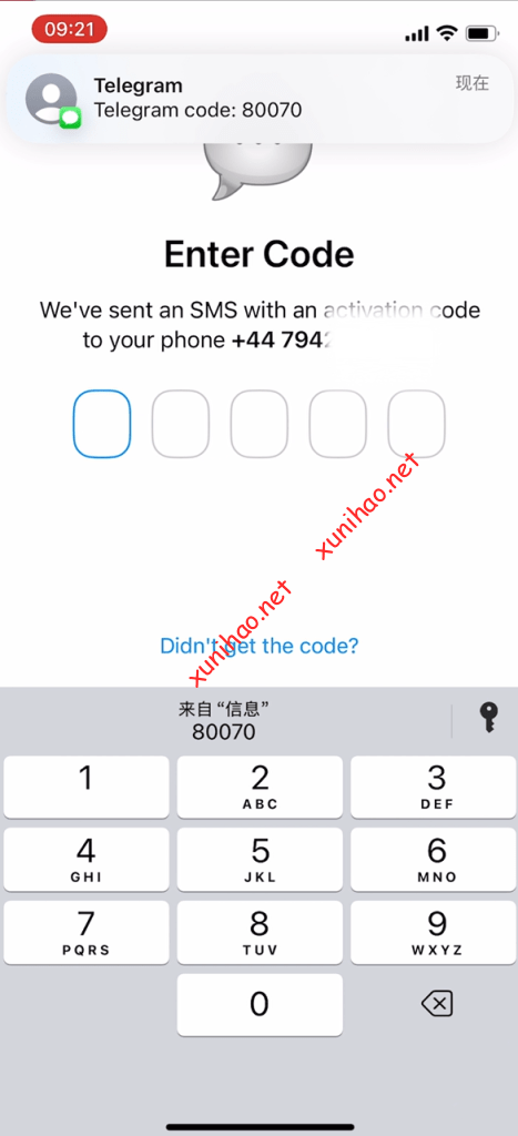 打开telegram APP,国家选择英国,电话号码填写邮件里的电话号码。