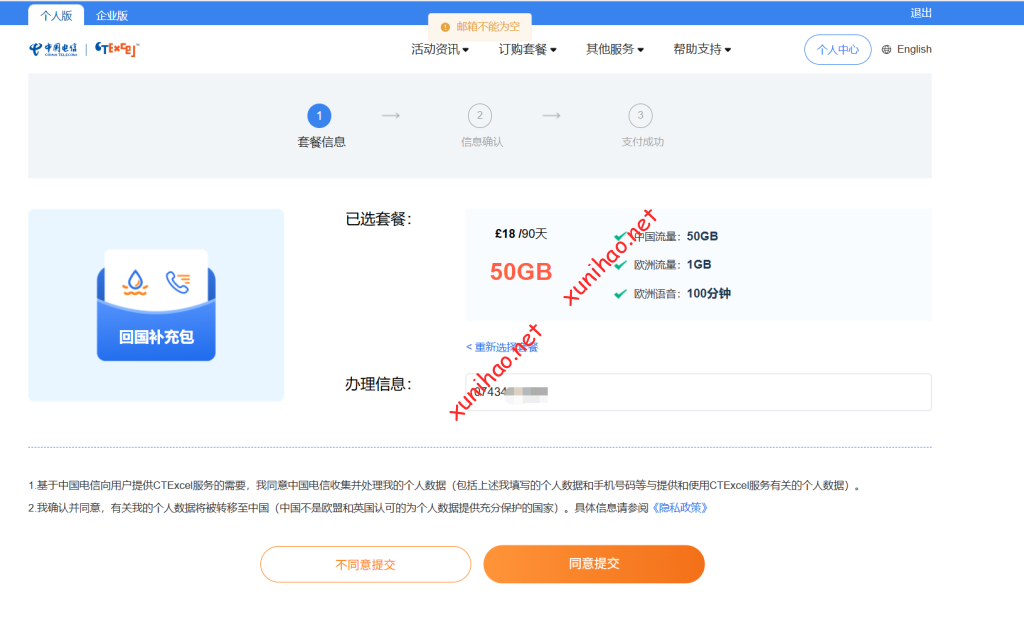 但是这个手机号码要提前绑定一个邮箱才能订购成功