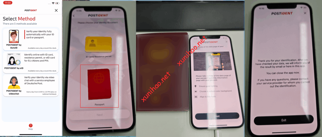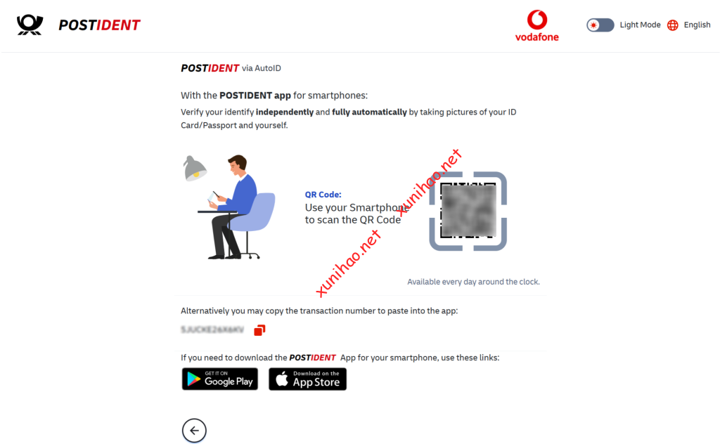 页面跳转到这个页面,系统提示我们需要到手机下载“POSTIDENT”这个软件,来进行身份认证。
