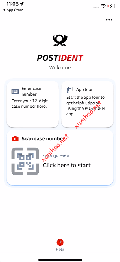 打开“POSTIDENT”APP,点击扫描二维码。扫描刚刚网页上面的二维码。