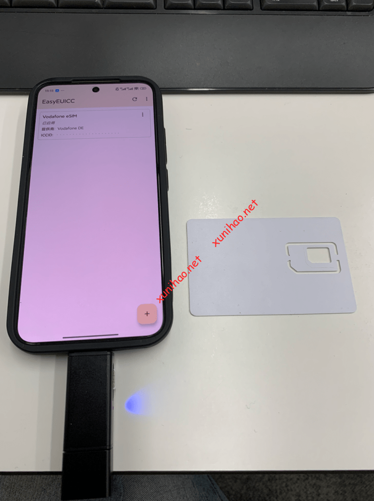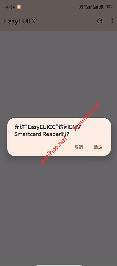 将白板芯片通过转换器链接到手机的usb接口,打开EasyEUICC应用程序,确定允许访问。