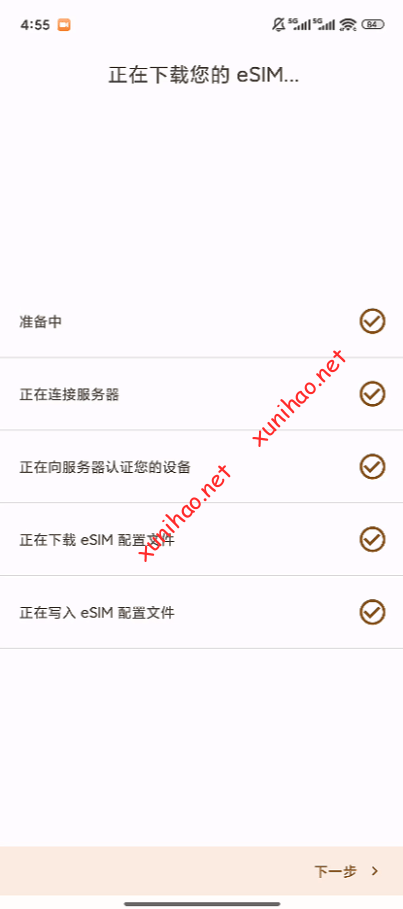 点击下一步,加载eSIM配置