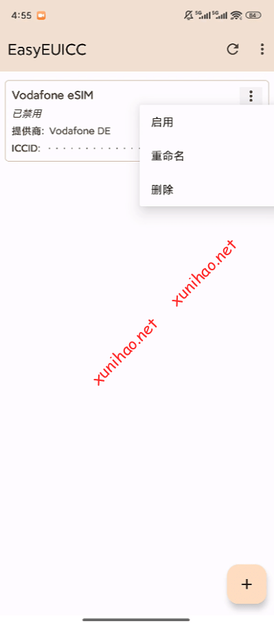 打开XeSIM app,点击右上角+号,选择扫码。