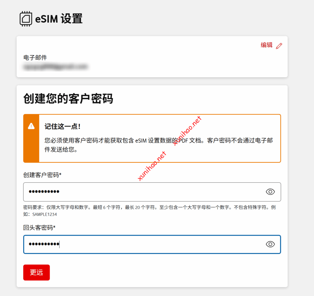 在eSIM设置页面,接收邮箱验证码