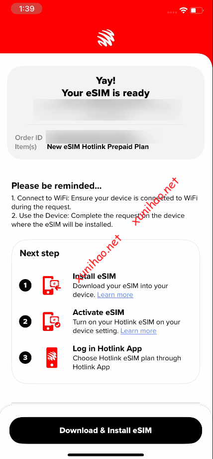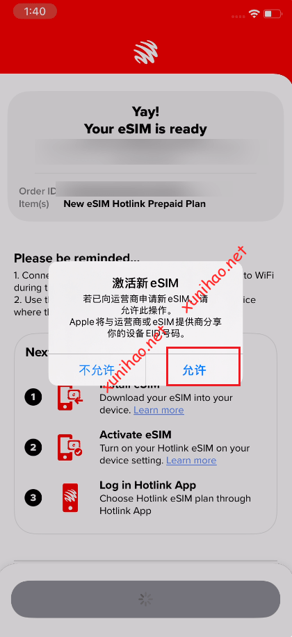 付款后,就可以下载激活eSIM了