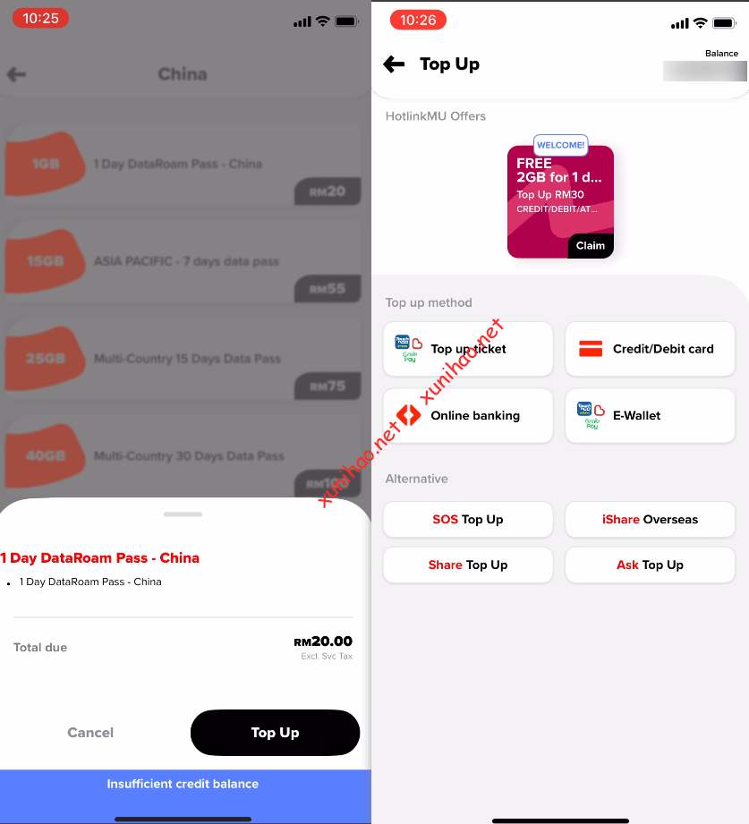 需要到至少充值20RM,充值过少不会有信号。可以用VISA或MASTER信用卡充值,也可以找第三方代充值平台充值
