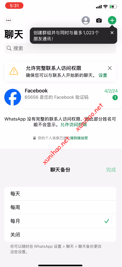 WhatsApp 就注册成功了