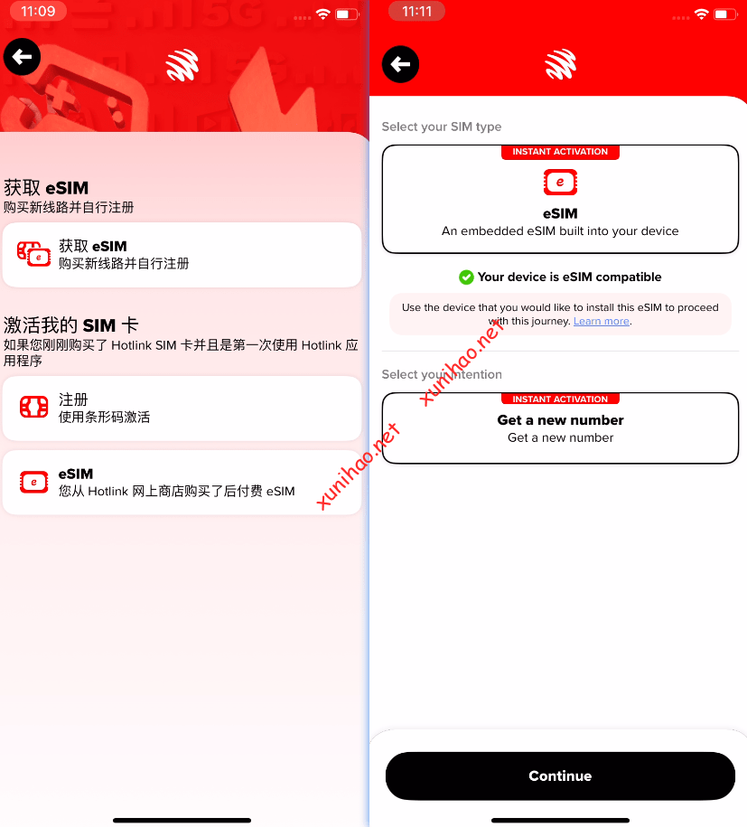 做好这些准备之后,打开手机上的hotlink APP,选择”Activate or Get New SIM“,激活或获取新SIM卡