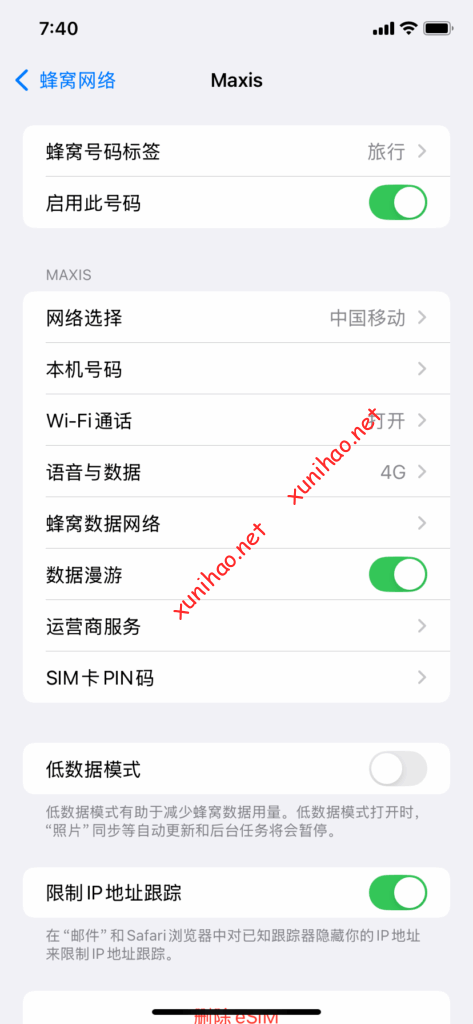 最后启用eSIM,打开数据漫游,很快就有信号了。