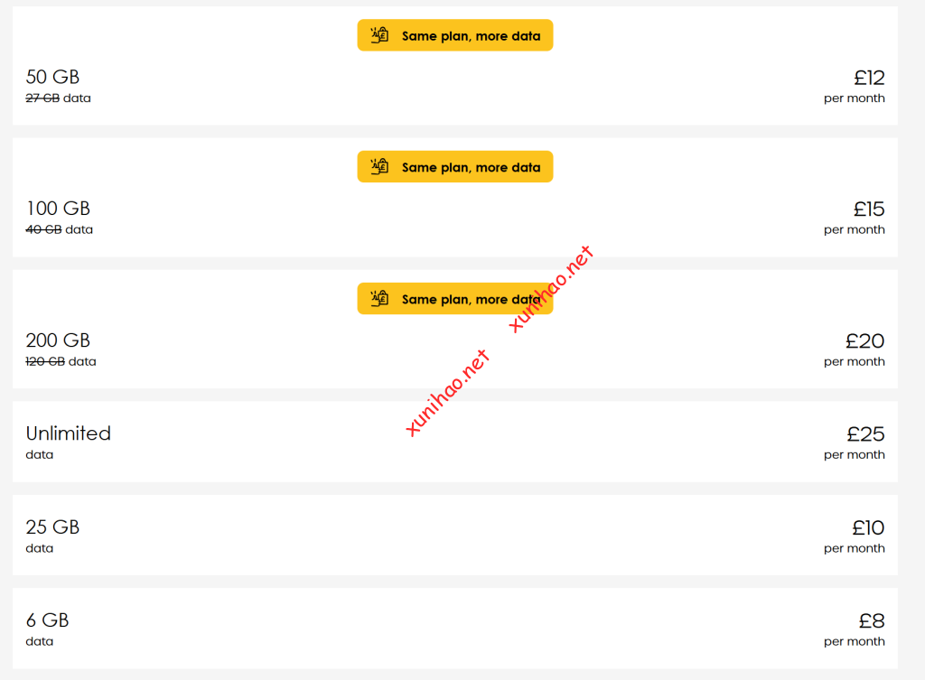 8英镑无限通话短信,8GB数据。