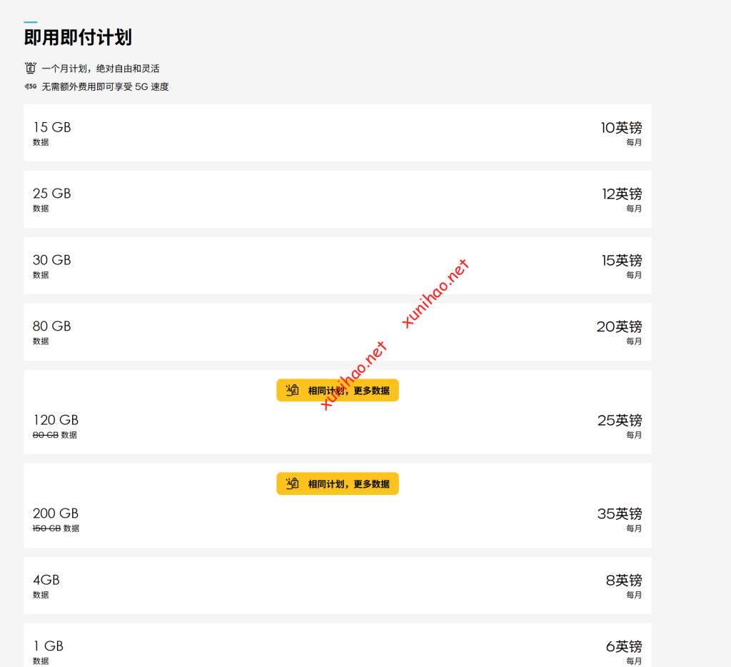可以购买即用即付的套餐6英镑 无线通话和短信1GB流量