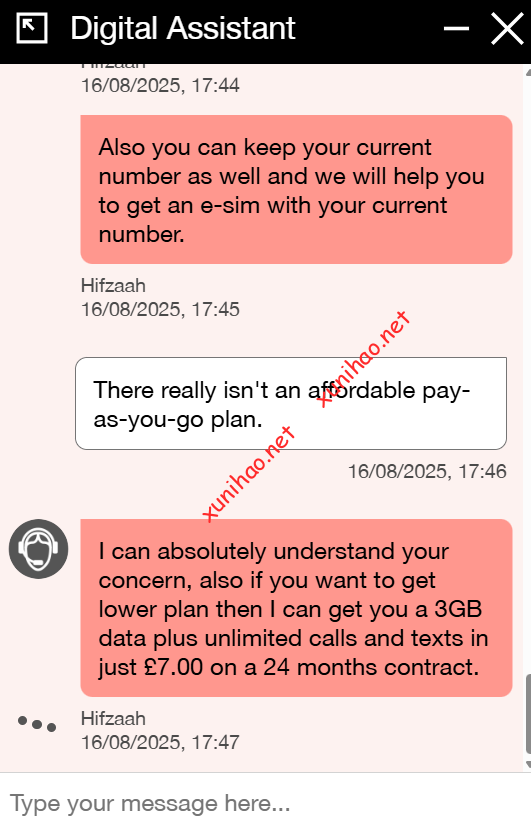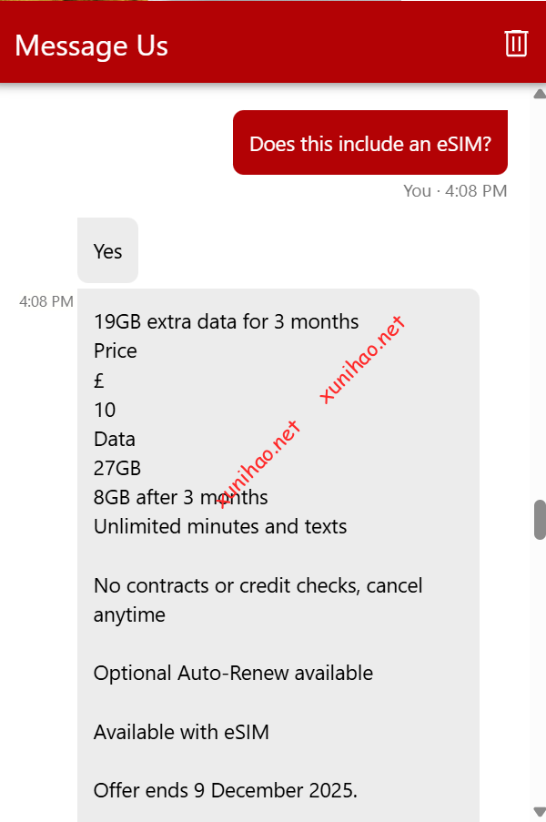 虚拟号又重新在官网询问客服,具有性价比的esim套餐 ,有即用即付的10英镑 esim套餐和基础月付套餐