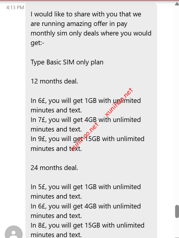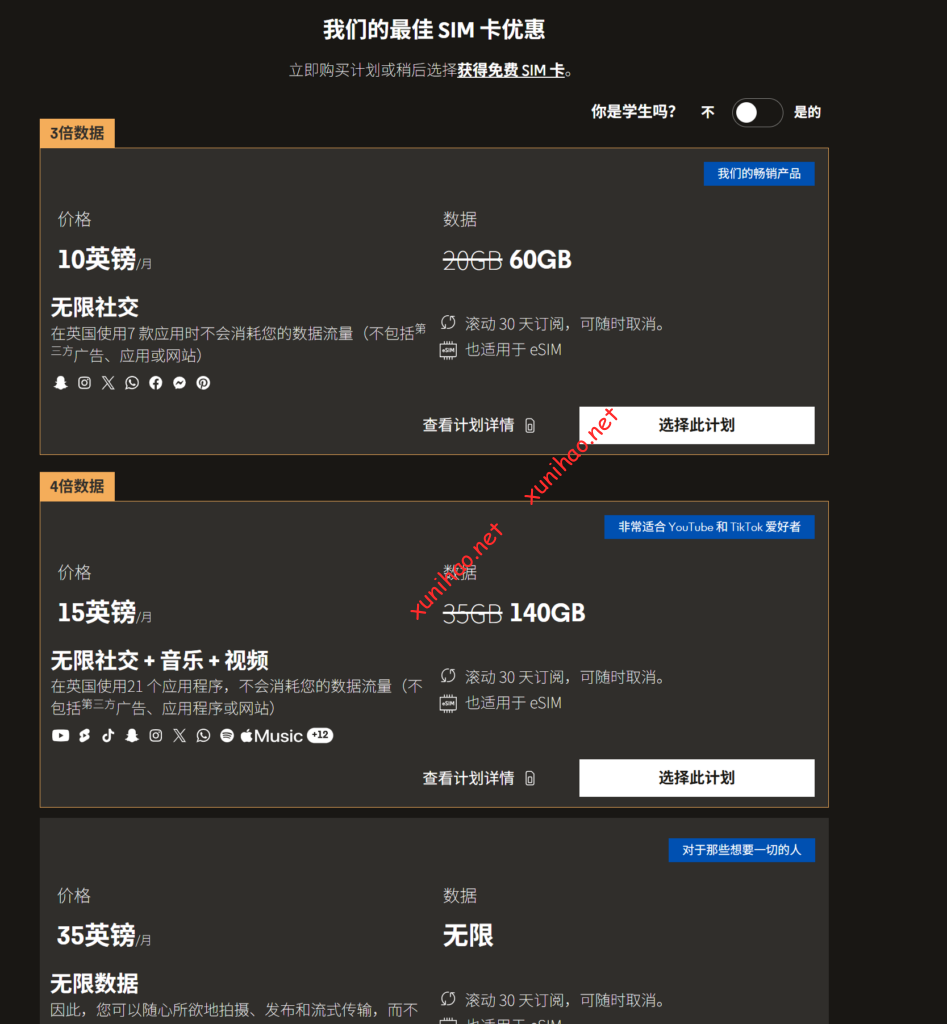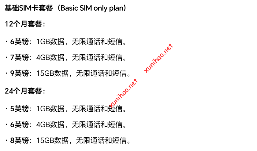 还有一个套餐是7英镑无限通话短信和3GB数据