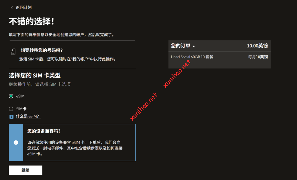 | tesco mobile UK(属英国MNVO虚商,依托O2基站网络) | 官网购买SIM卡类型为ESIM,选择套餐“10英镑12GB” | 需每6个月内有一次使用记录(如拨打电话、发送短信、收费通信等) | 用户需要先订购带有物理 SIM 卡的套餐再转换为eSIM |