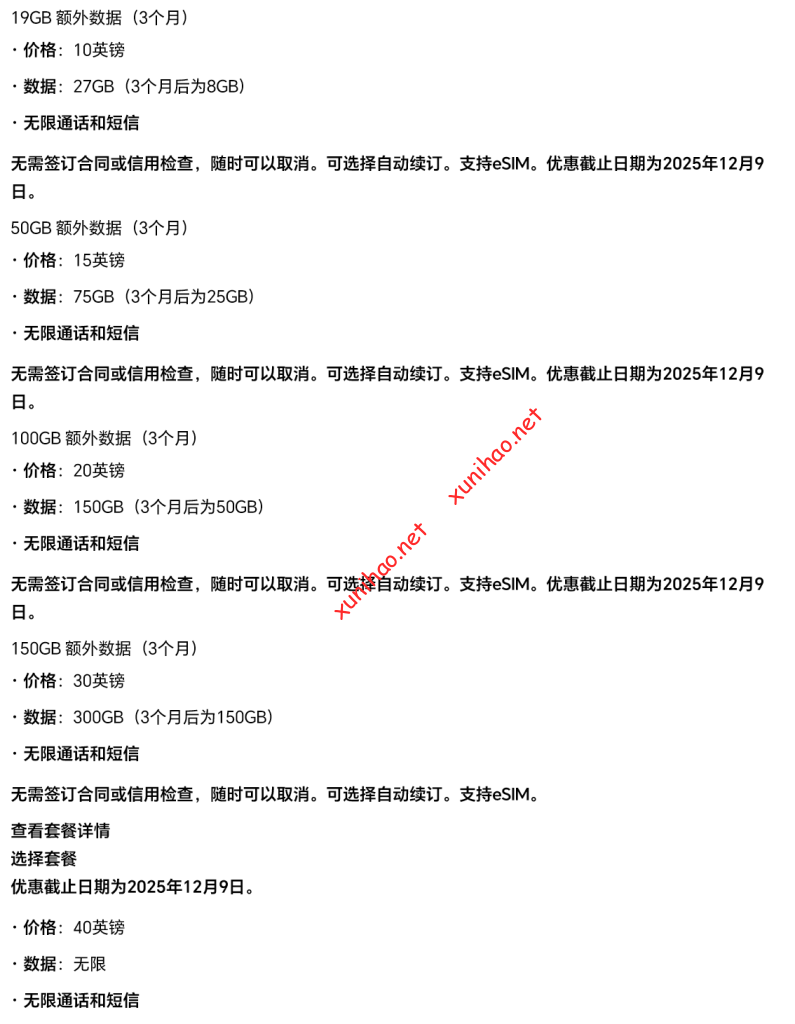 套餐都包含大量数据流量,英国和大陆流量共享。这些套餐是都可以支持esim的。