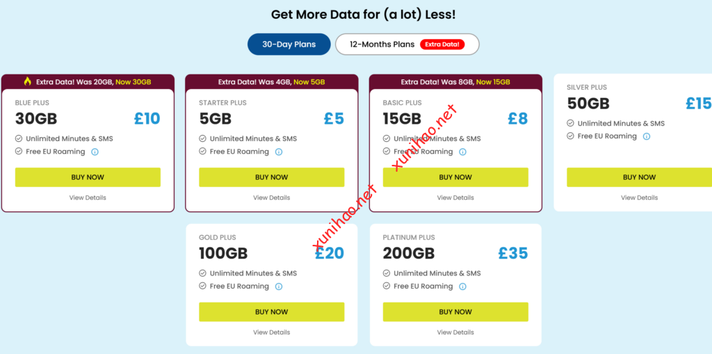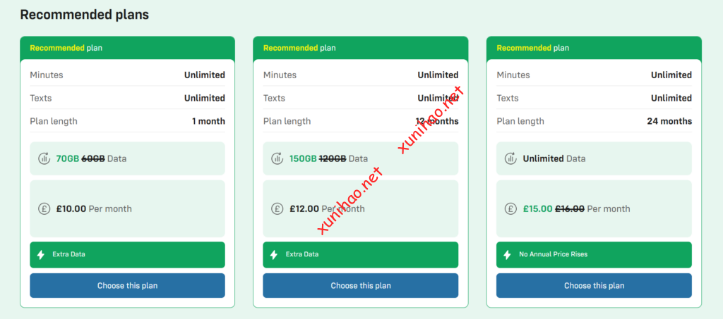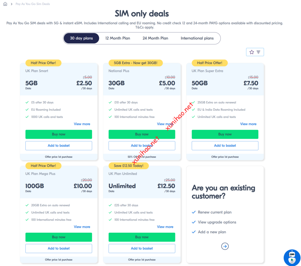 但这两个套餐都是月付套餐。并且是官网没有的套餐,需要和three uk客服联系购买。