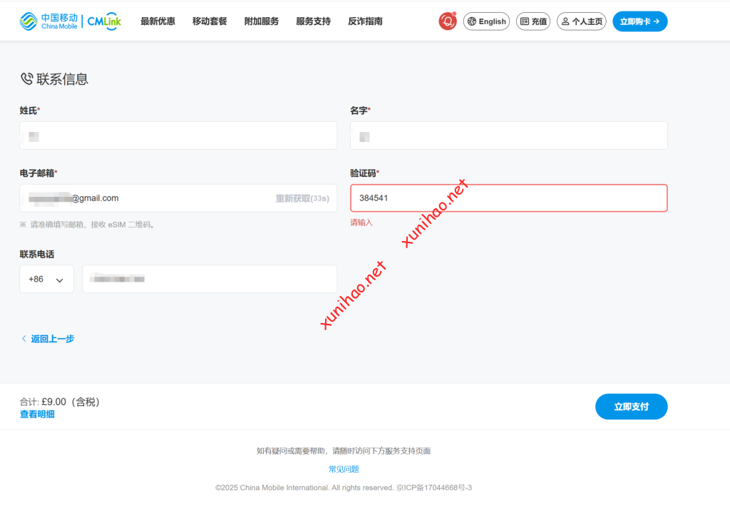 填写自己的邮箱和姓名以及联系电话。选择立即支付。