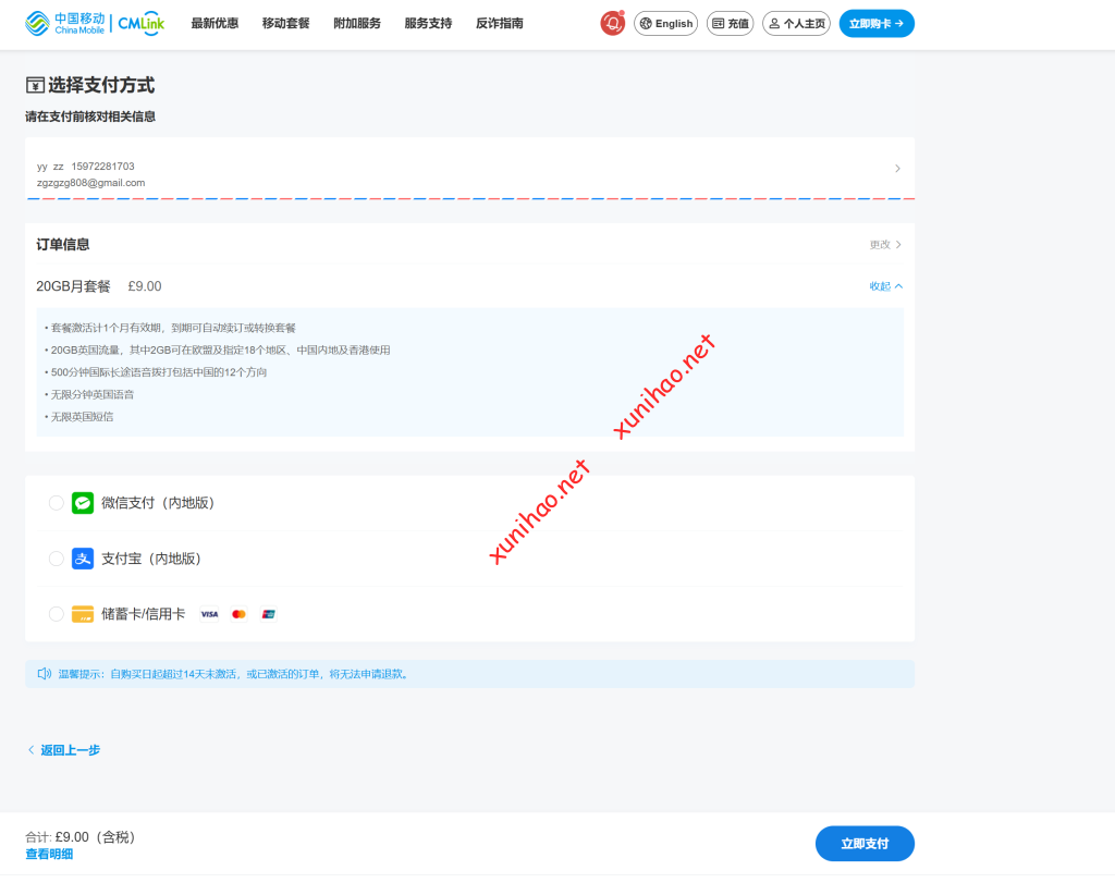 选择立即支付,再选择自己的付款方式支付后,就有新的邮件发送到你的邮箱里,里面有esim二维码。扫码到手机手,带着这个ESIM手机在英国当地或者欧盟激活,有用户反馈过cmlink uk esim在香港无法激活