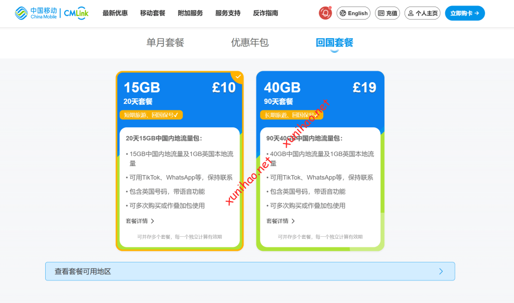 有回国套餐和英国套餐,可以同时拥有一个英国号码,一个中国副号码,免翻墙。