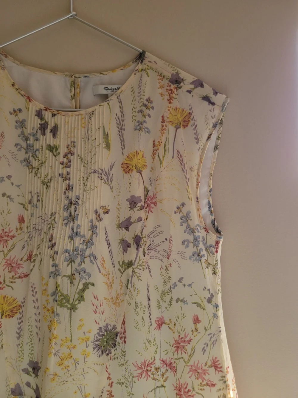 收到之后果然很是喜欢,盲选的尺码也刚好合适,整条裙子都有内衬,胸前有细微的立体褶皱,每一个折痕都是车线缝成的,十年过去依旧规整立体。表面的花色也是一株株完整的花卉水彩画,像极了那种vintage flower book里的插页。虽然是丝质的,但维护起来并不娇气,每次手洗完晾干还是保持着那种轻飘飘的柔软质地。还有一个能让她保留十年的原因可能是她底色就是鹅黄色的,丝质衣服容易变黄的缺点也被掩盖了。