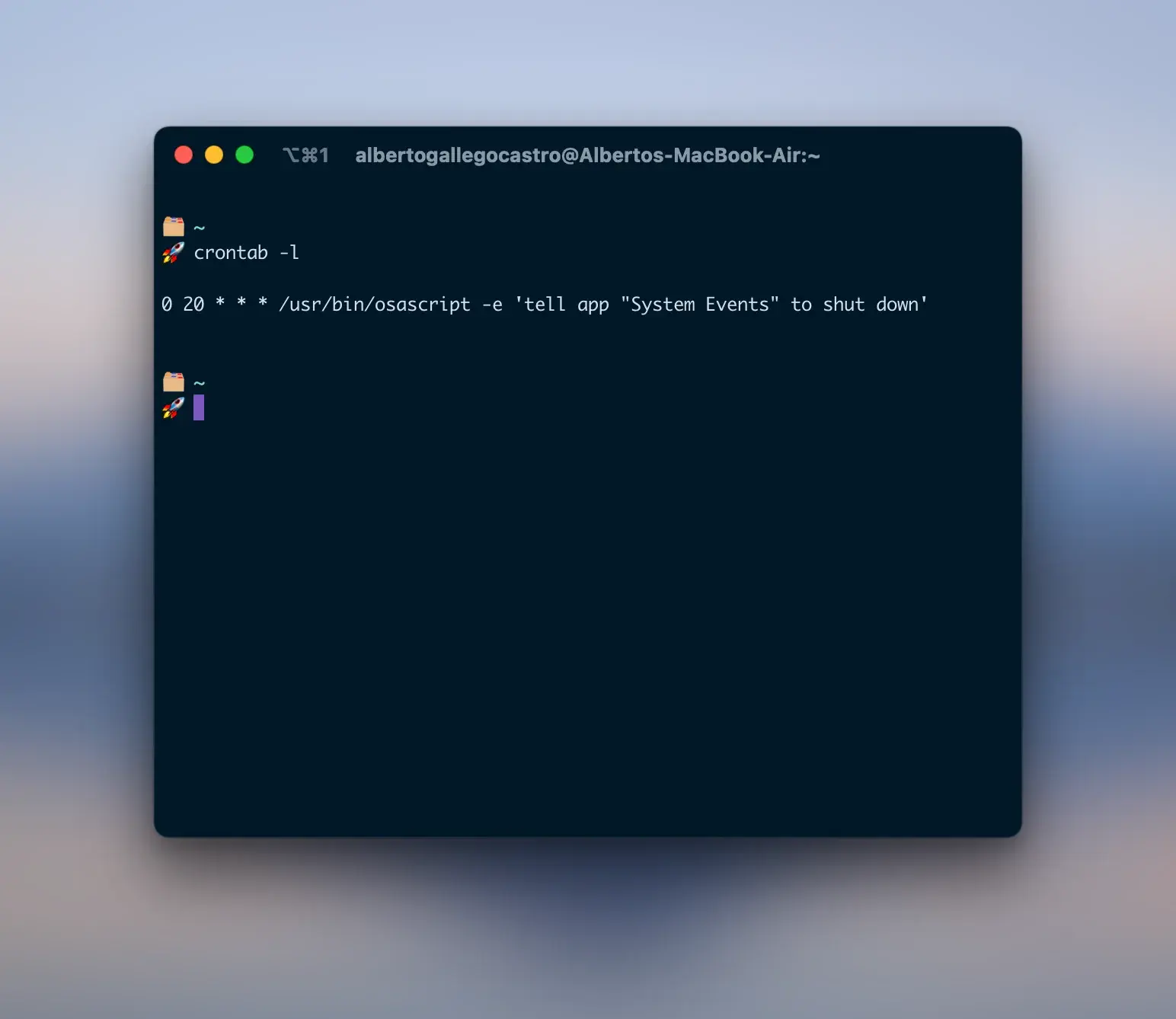 If it shows up, you’re all set. You can close the terminal and forget about it. Now, every day at 8pm, your computer will shut down and you’ll have no choice but to settle for a sad little notebook or a boring book.